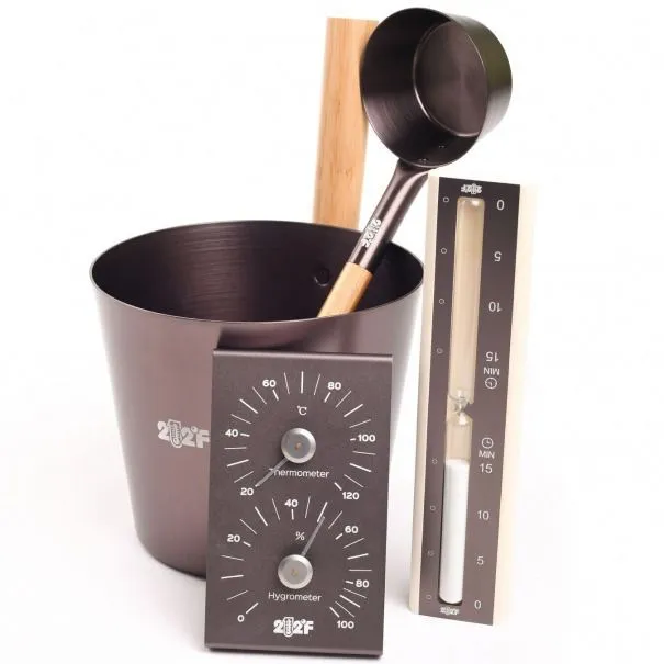 Набор для бани OXY-M-4 BLACK Ушат 5л + черпак 0,2л ручки бамбук + песочные часы + термогигрометр