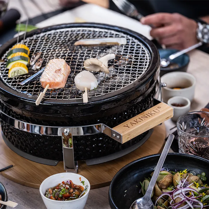 Угольный керамический гриль, Shichirin, настольный, круглый