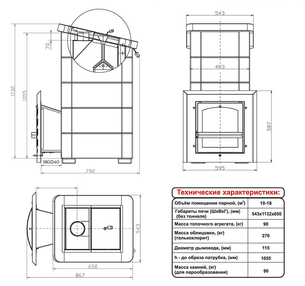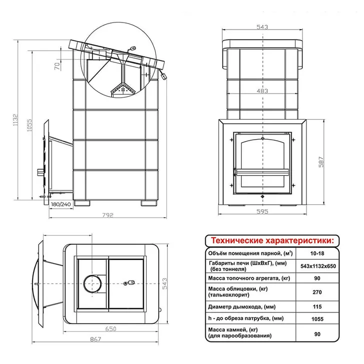 Печь для бани "Сударушка Семейная РК" с чугунной дверцей