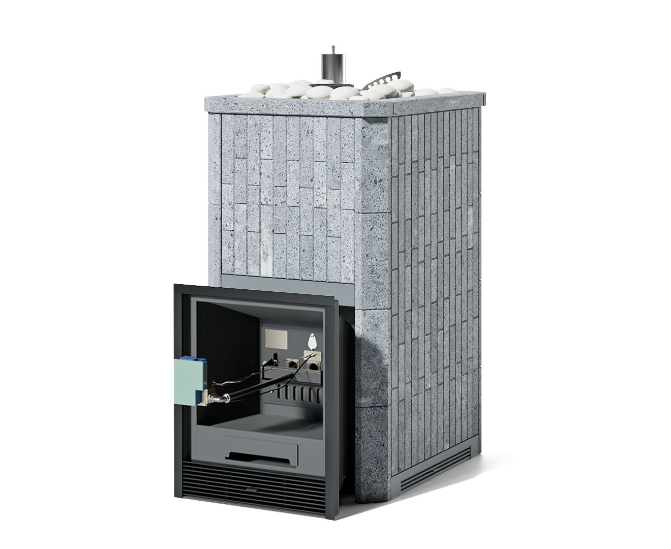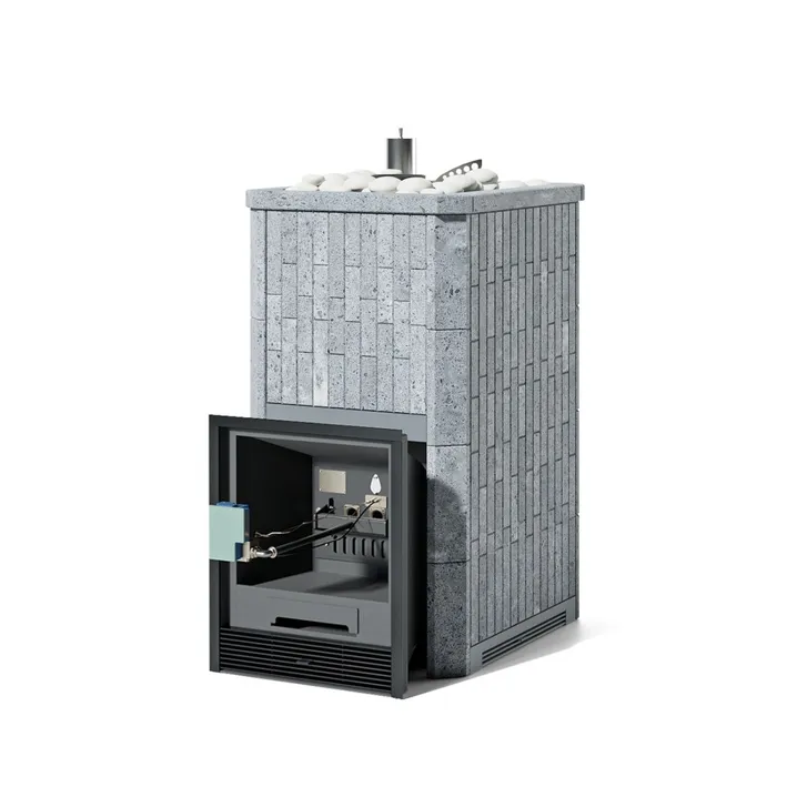 Печь Сочи в наборном полноценном кожухе, талькохлорит, с открытым верхом, на газу