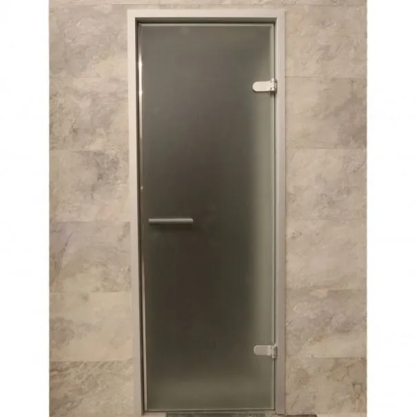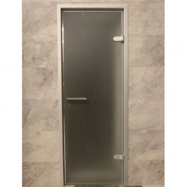 Стеклянная дверь в алюминиевом профиле, хамам, сатин, 190х70 (левая)