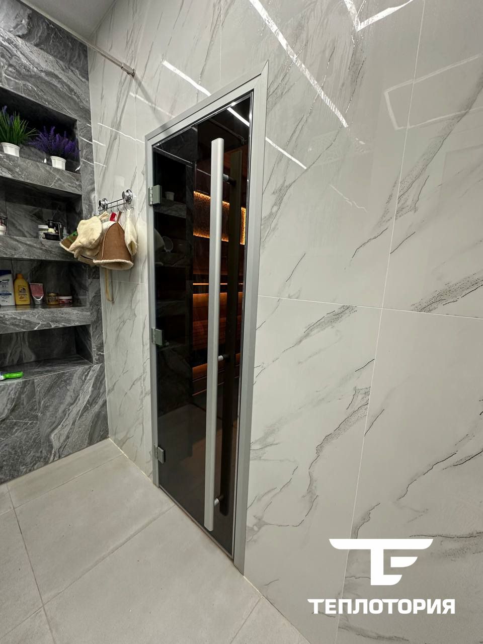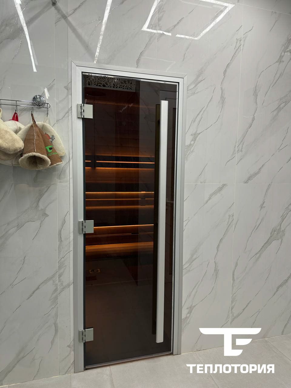 Стеклянная дверь "Хамам Престиж" с вертикальной ручкой, бронза, 80х200 см