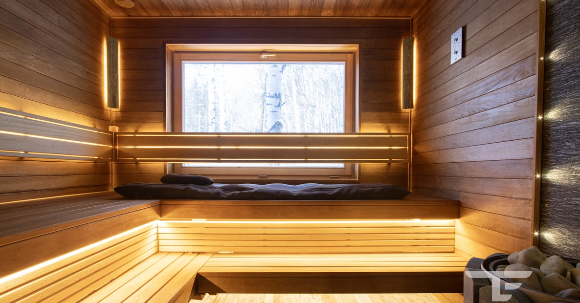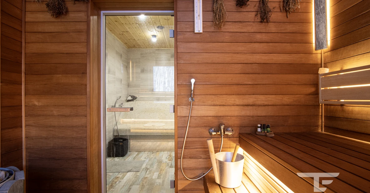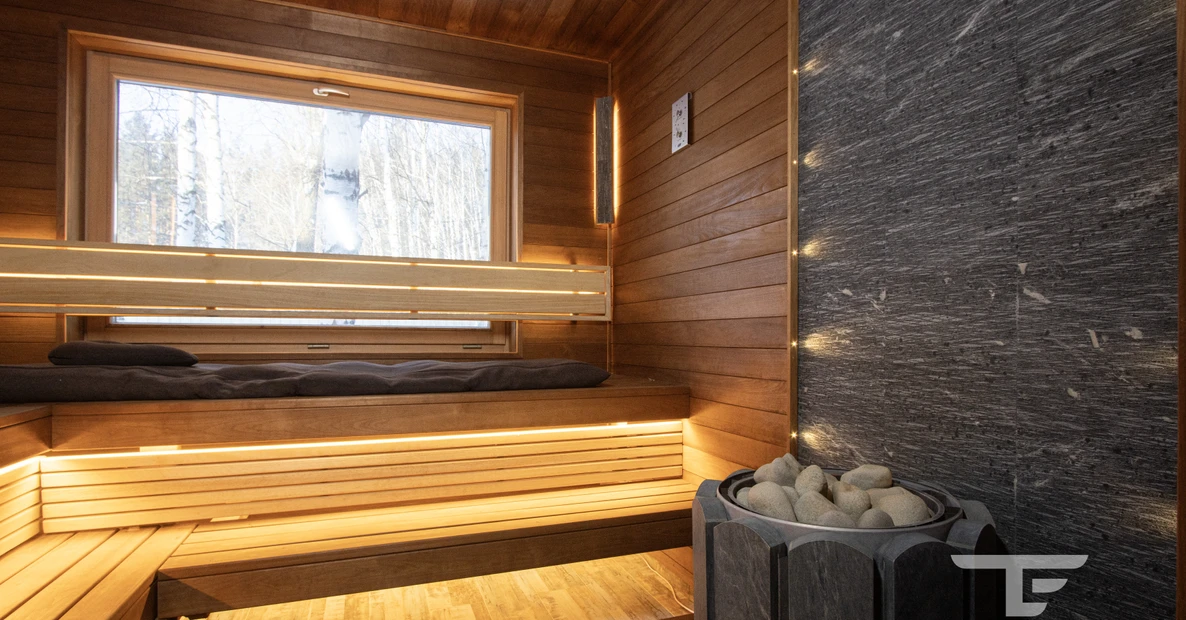 Особенность бани - электрокаменка в облицовке. И традиционный микроклимат создается, как отмечает сам заказчик.