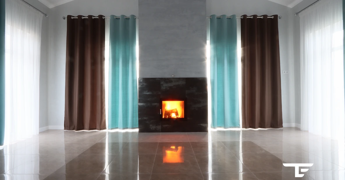Камин "Hoxter" встроенный в стену в гостиной в доме.