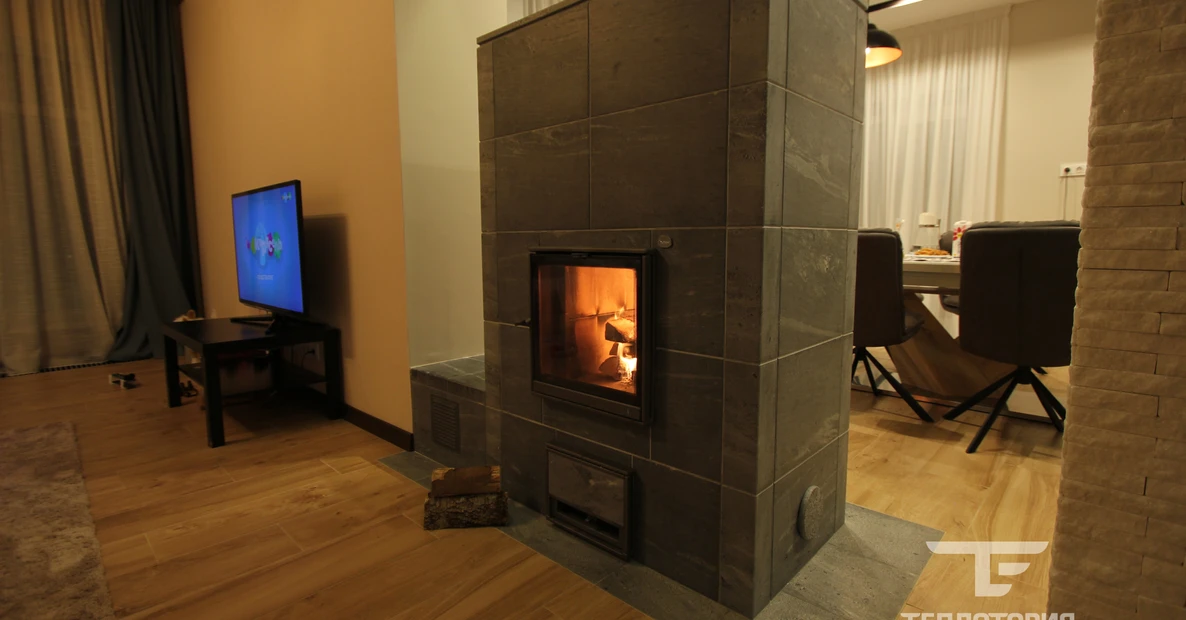 Камин Туликиви со сквозной топкой в гостиной дома