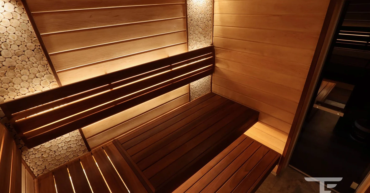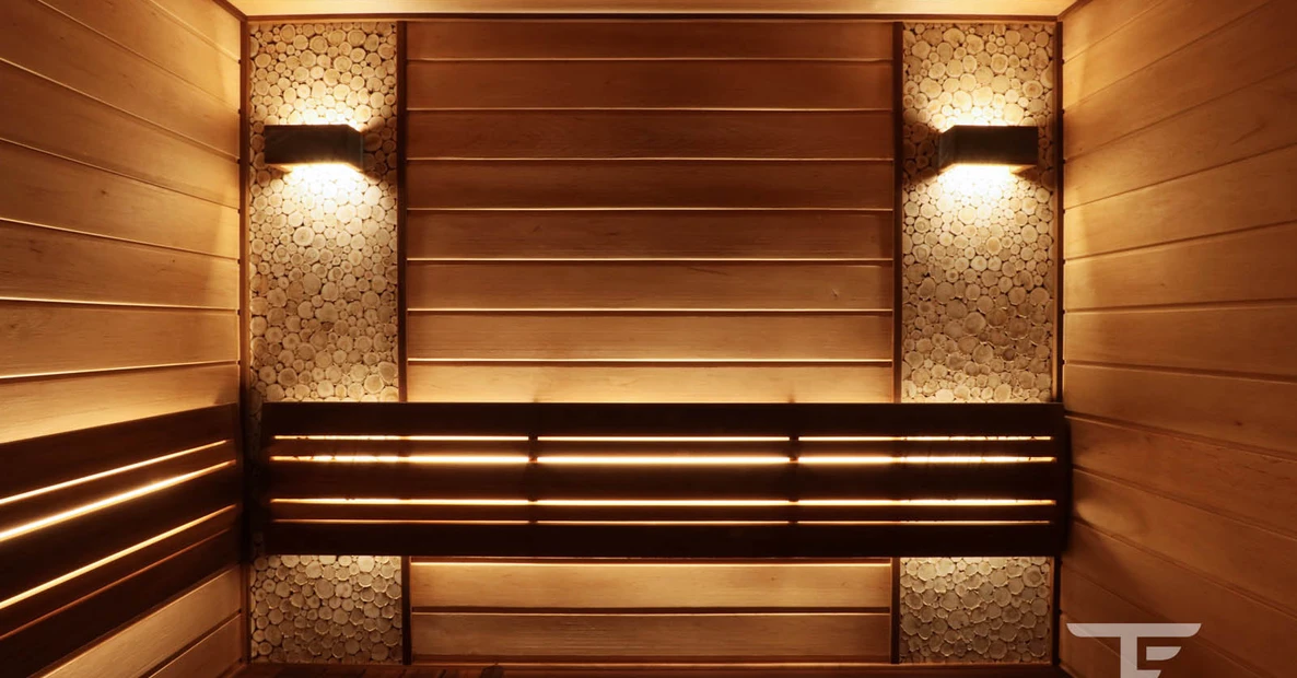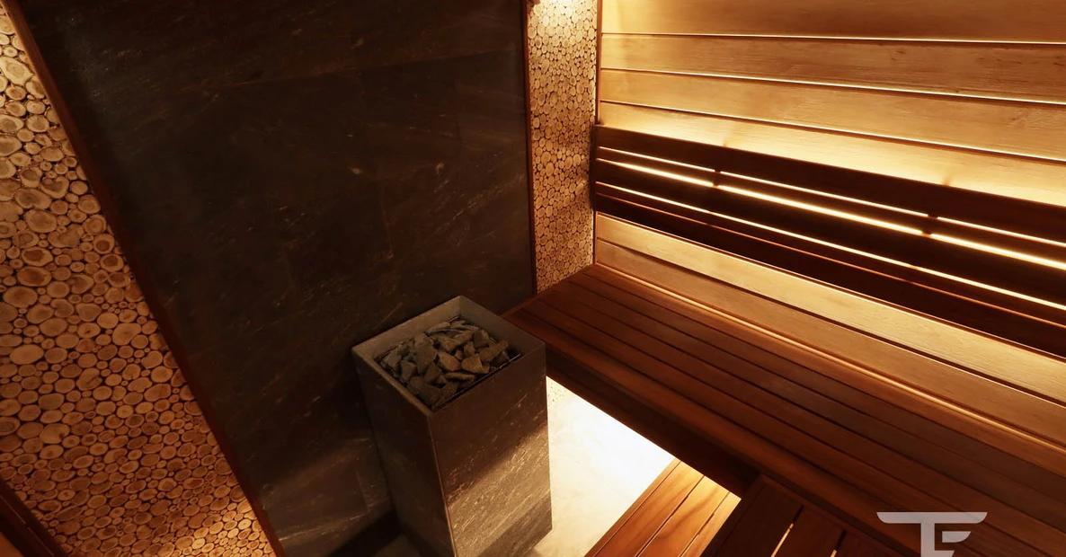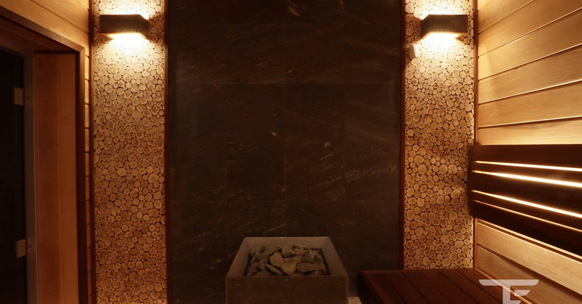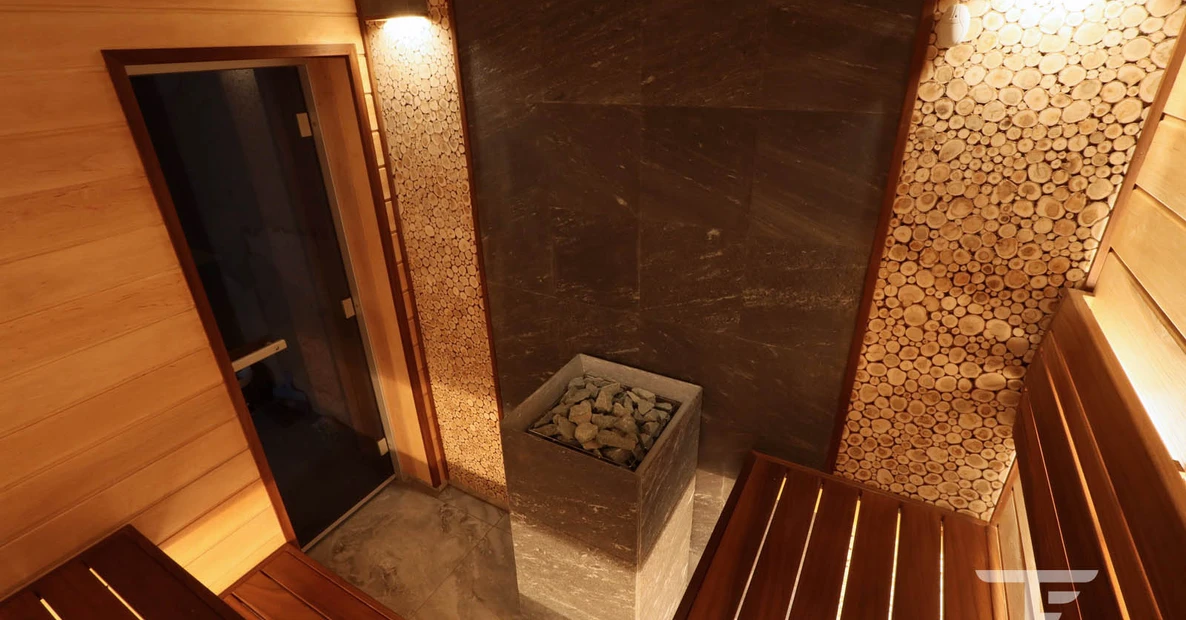 Поэтому в этом проекте использована электрокаменка в каменной облицовке из талькомагнезита Tulikivi.