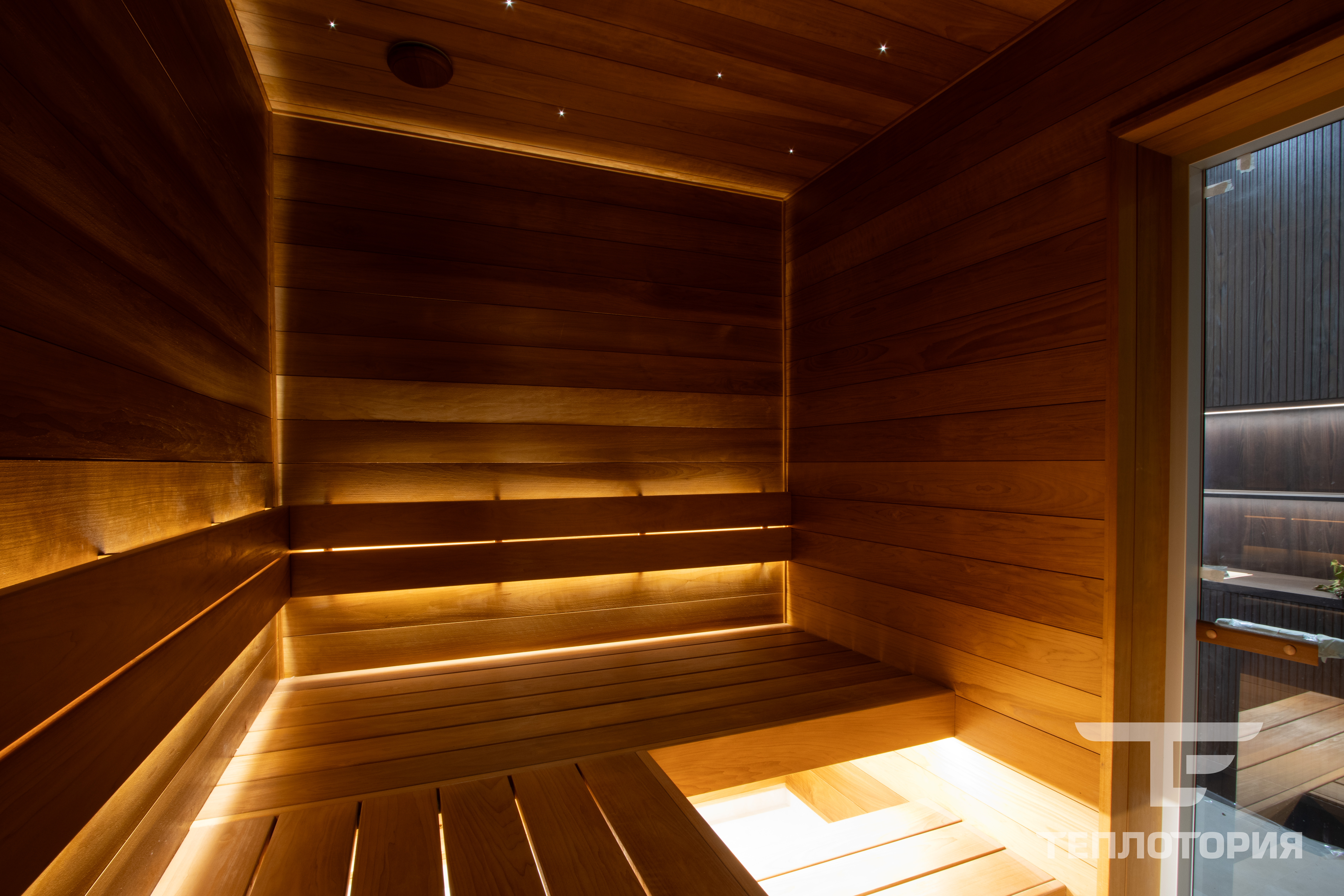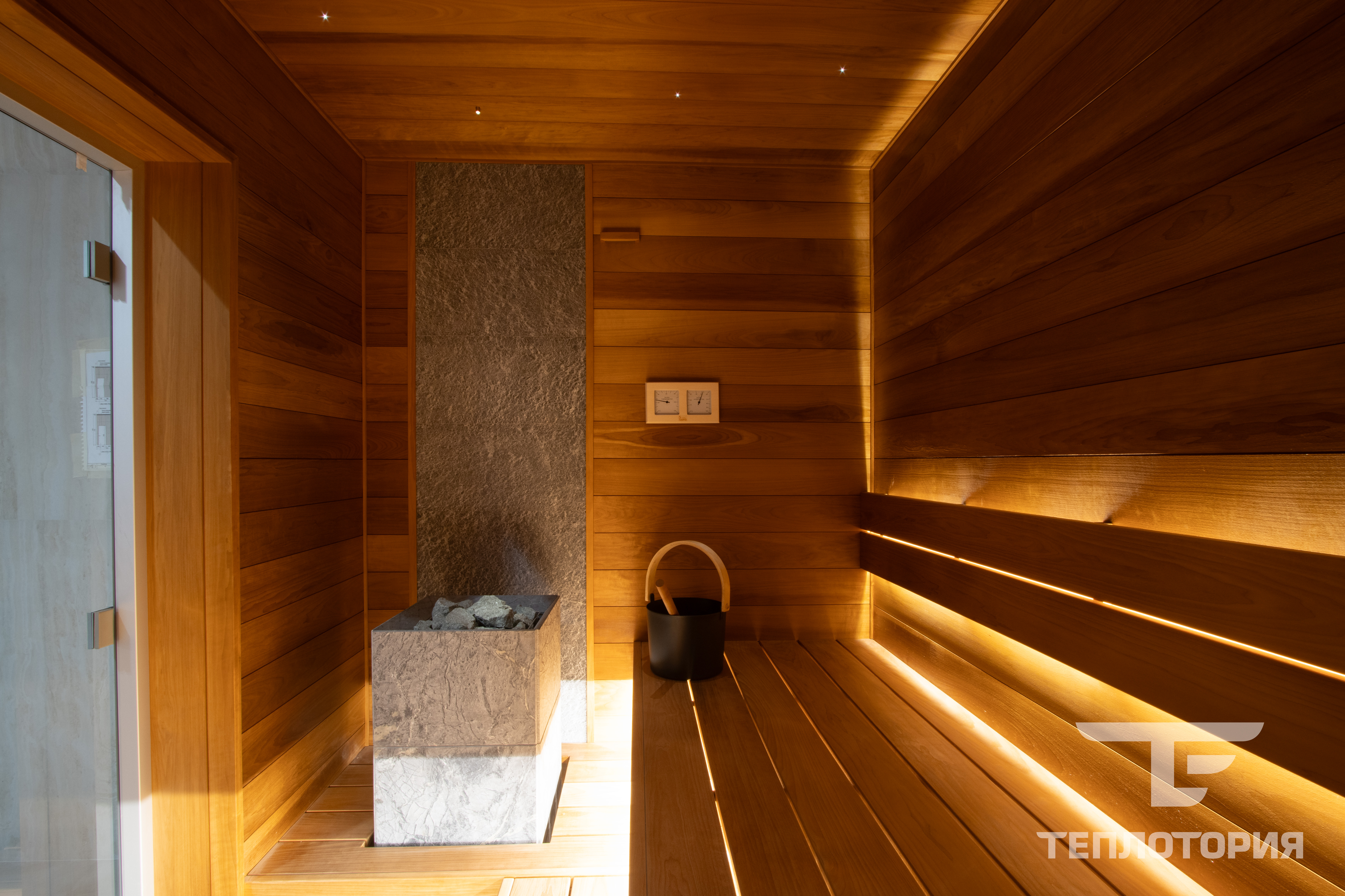 Комфорт: продуманная система освещения и качественные материалы делают пребывание в парной приятным и безопасным.