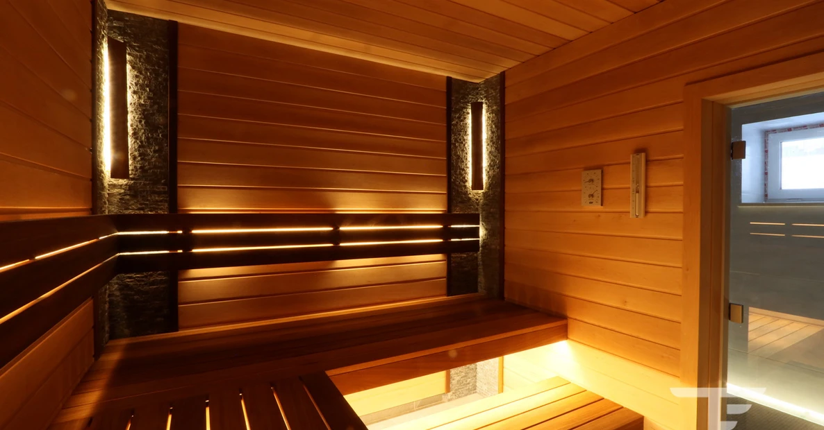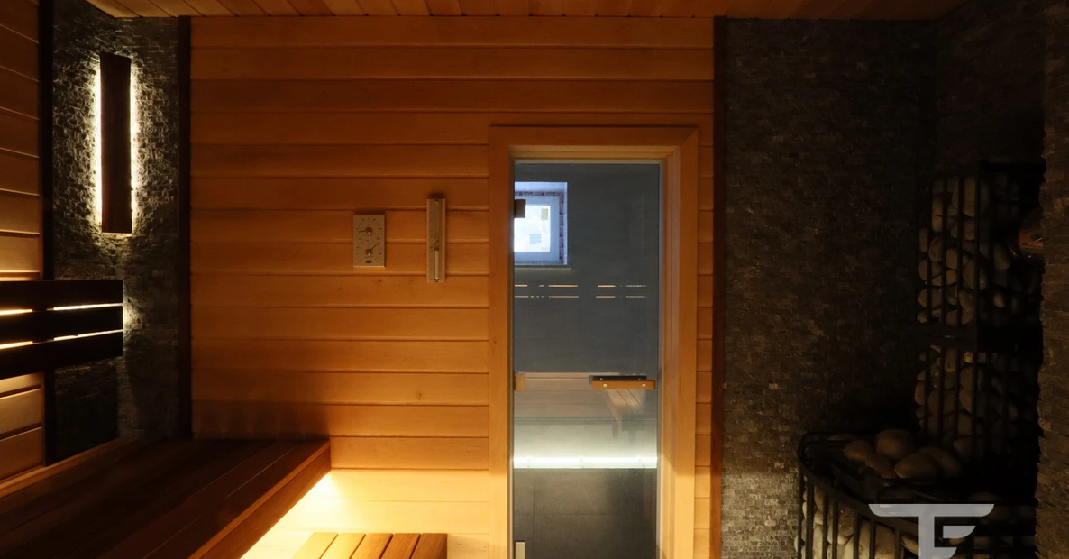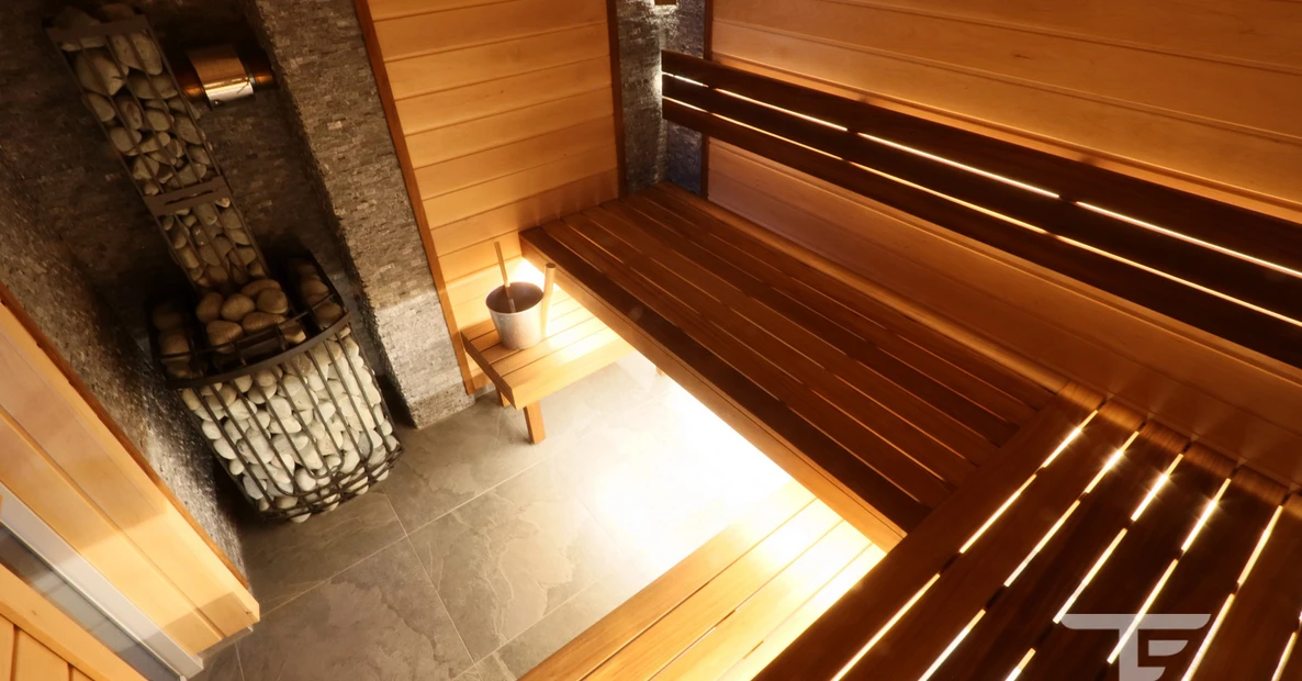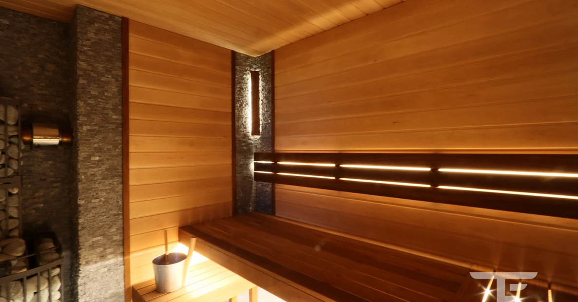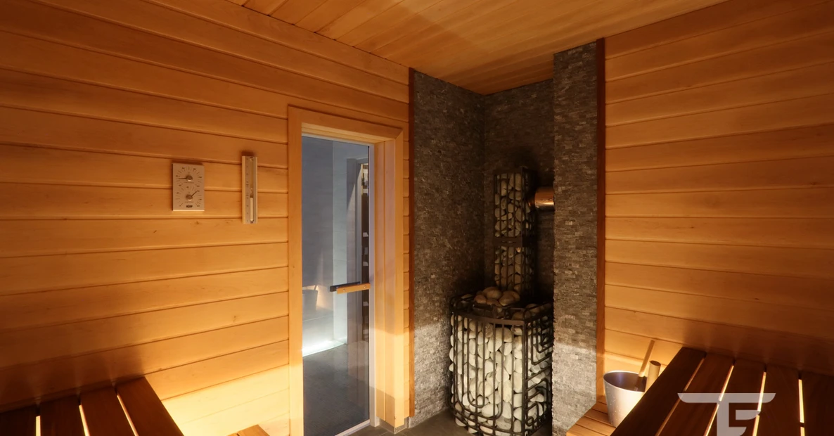Для нас это замечательный и запоминающийся проект. Т.к. наконец-то мы сделали каменные угловые группы с линейными источниками света. Давно мы хотели их сделать и заказчик этой бани был с нами на одной волне.