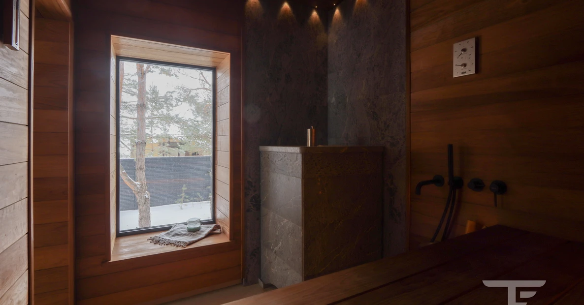 🔸банная печь (на газу) в облицовке из финского талькомагнезита;