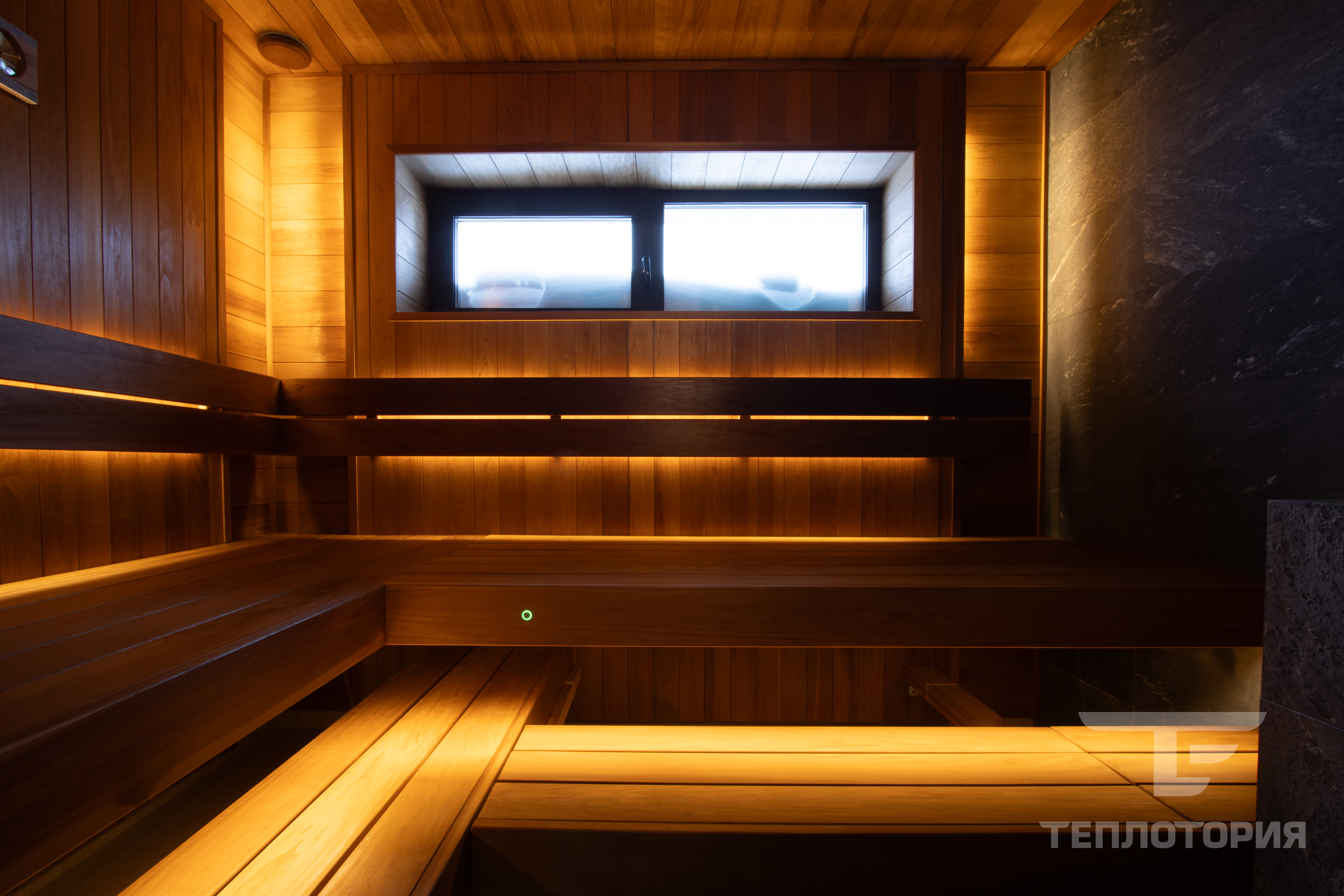 - Окно на стене для кратковременного и интенсивного проветривания парной, восстановления микроклимата бани по температуре и влажности.