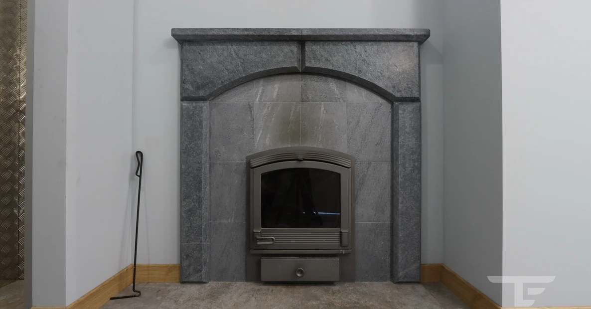 Банная печь в облицовке из талькомагнезита работает с помощью керамического дымохода сбоку от печи. Обеспечено боковое подключение к дымоходу, таким образом нет видимой части металлического дымохода и мы видим только лаконичную картинку печи в бане. Функционально и красиво.