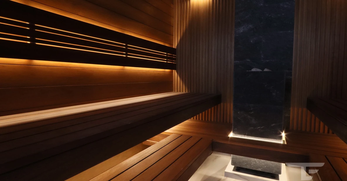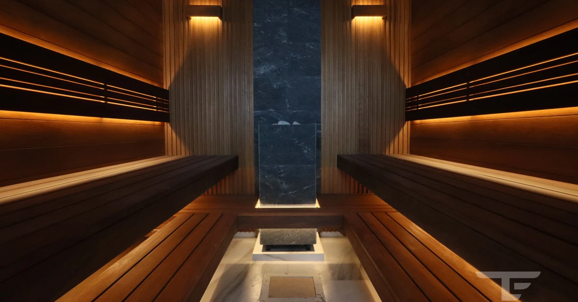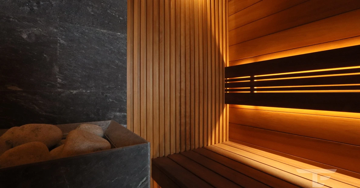 Это универсальный подход к функционалу бани. Два полка, семейная парная. В случае компании друзей можно разместиться сразу на 4-6 человек и провести коллективный прогрев с помощью веера.