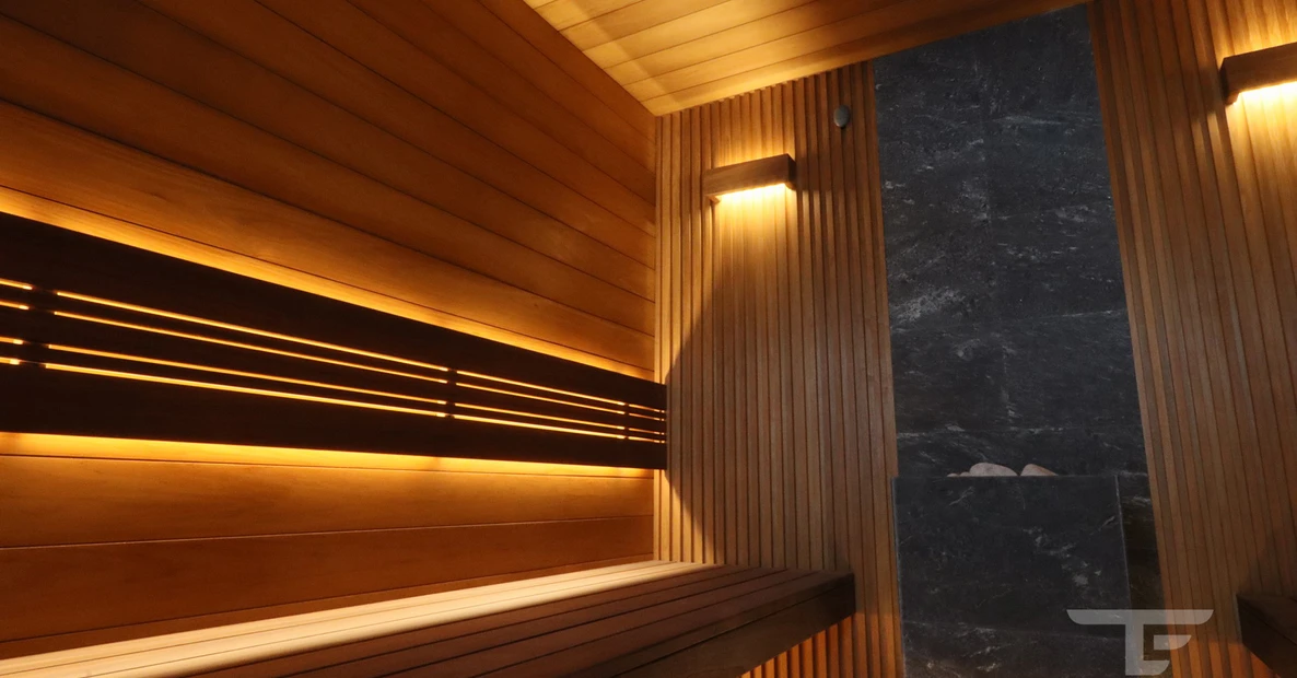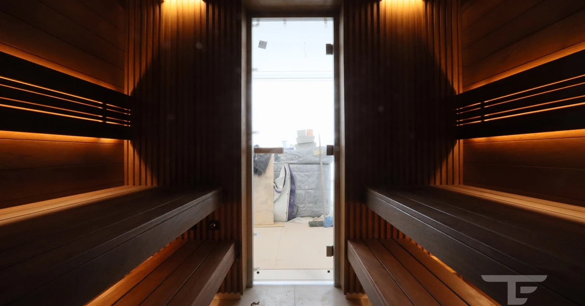 Отделка парной - это полностью термоосина, но две стены из реейчной вагонки. Остальные из классической вагонки STS профиля.